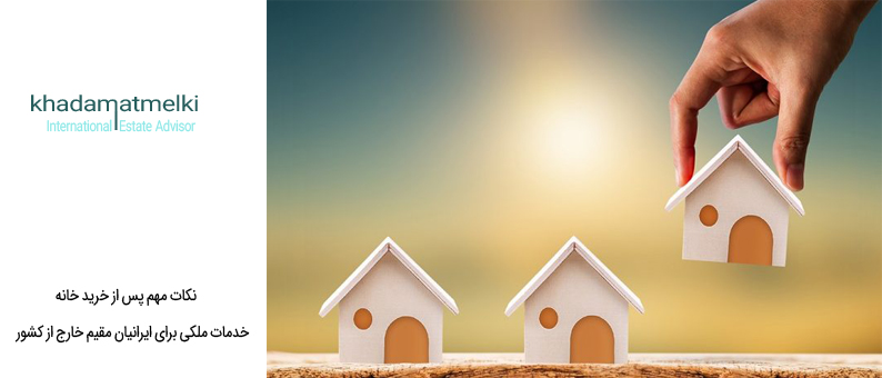 نکات مهم پس از خرید خانه صاحب خانه جدید باید در نظر بگیرد که به چه نوع خدماتی برای خانه احتیاج دارند. برای برخی از این سرویس ها باید قبل از تعطیلی تماس گرفته شود تا اطمینان حاصل کنید که در روز جابجایی خانه آب و سایر خدمات مورد نیاز برای اطمینان از اینکه همه چیز روان پیش می رود برقرار است. ابعاد مختلف مربوطه از قبیل ثبتی، حقوقی، مهندسی و شهرداری توأم با اطلاعات روز را به ما بسپارید که به صورت 24 ساعته اماده خدمات ملکی به شما هموطنان عزیز در داخل و خارج ایران هستیم.