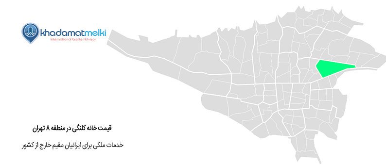 قیمت خانه کلنگی در منطقه 8 تهران جهت خرید و فروش، از خدمات ملکی بخواهید که به صورت 24 ساعته اماده سرویس دهی به شما هموطنان عزیز در داخل و خارج ایران می باشد. منطقه 8 عاری از خطاهای زلزله. منطقه 8 تهران در تپه کناری دامنه آرام کوههای البرز در قسمت شمالی ارتفاعات سه تپه در شرق تهران واقع شده است. آمارها نشان می دهد که این منطقه دارای 3 منطقه ، 20 محله و 900 هزار خانوار جمعیت است. بررسی کارهای تحقیقاتی انجام شده در مناطق مختلف تهران نشان می دهد که این منطقه از بهترین مناطق شرق تهران است.